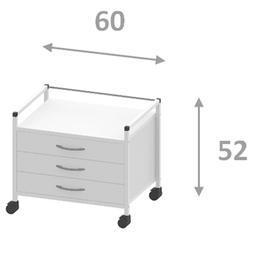 52 cm hoch, 3 Schubladen,
